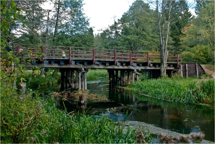 Dolina Rospudy.Drewniany most na rzece Rospudzie.Natura 2000.