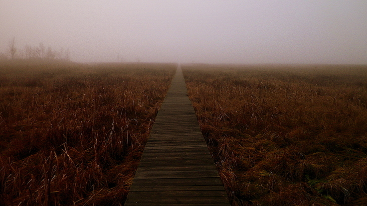 Kładka dydaktyczna na Bagnie Ławki we mgle
