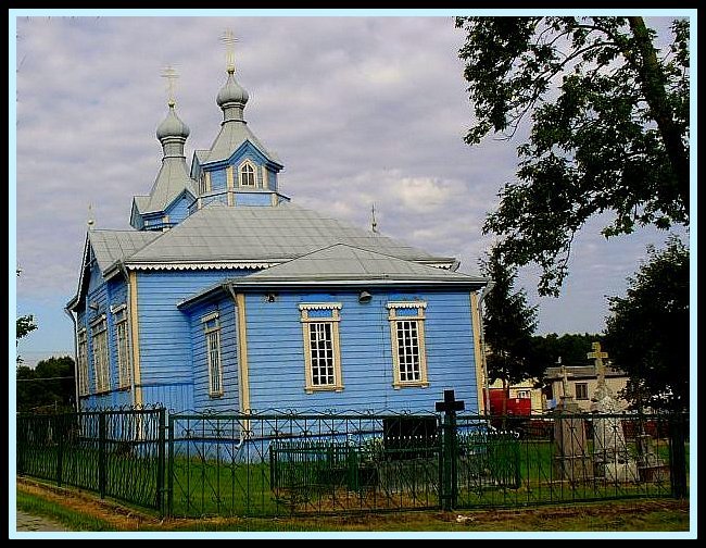 Bardzo malowniczo wyglądają te drewniane cerkwie w niebieskich kolorach...pozdrawiam :))