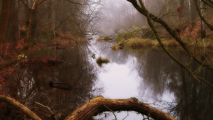 Fosa okalająca I fort Twierdzy Osowiec późną jesienią