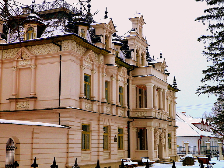 Pałacyk Buchholtza w jesienno-zimowej scenerii.