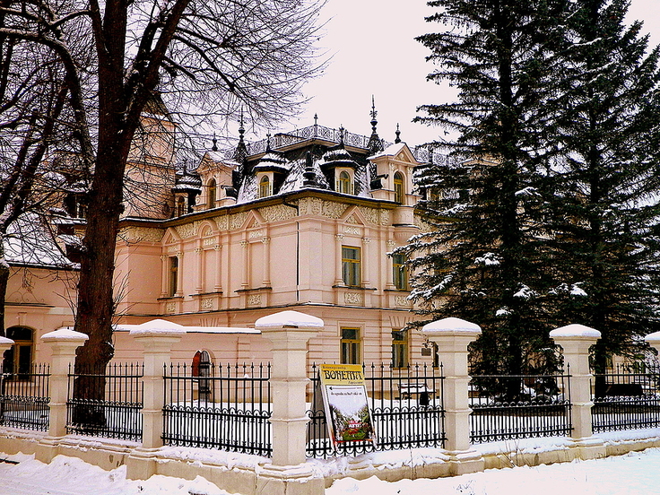 Pałacyk Buchholtza w jesienno-zimowej scenerii.