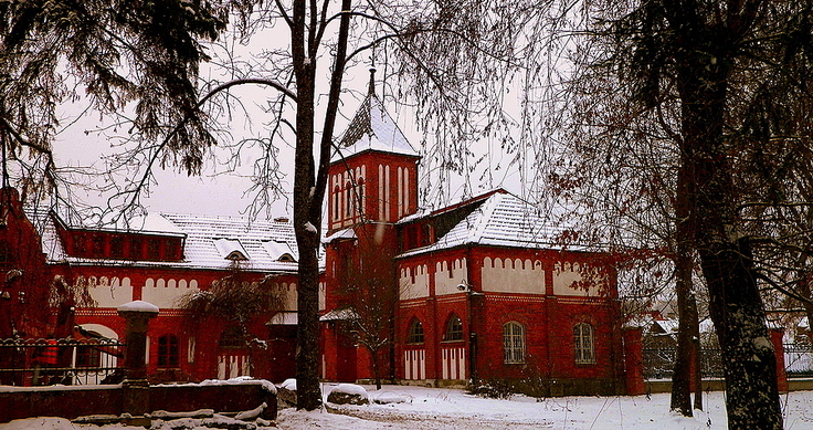 Pałacyk Buchholtza w jesienno-zimowej scenerii...wozownia...