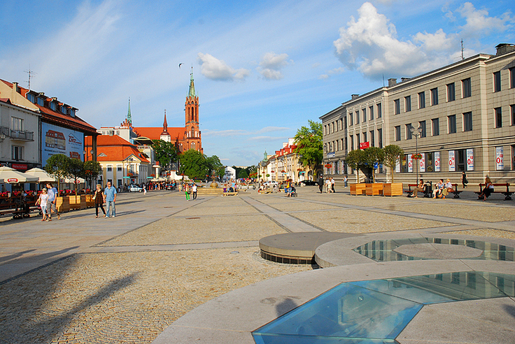 Białystok, Rynek Kościuszki z widokiem na zespół bazyliki archikatedralnej Wniebowzięcia Najświętszej Maryi Panny w Białymstoku