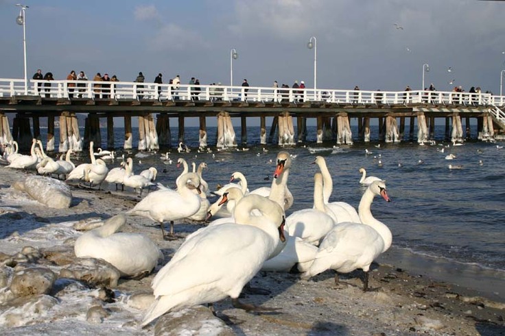 Zimą na plaży w Sopocie też jest pięknie i interesująco:) Taka gromada łabędzi z pewnością ociepla zimowy spacer:)