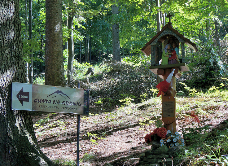 Meszna.Kapliczka na Różańcowym Szlaku Maryjnym z Mesznej do Szczyrku na Górkę.