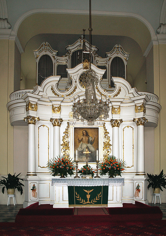 Pszczyna. Neobarokowy ołtarz w kościele ewangelickim.