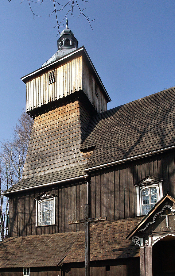 Wieża drewnianego kościoła w Starej Wsi.