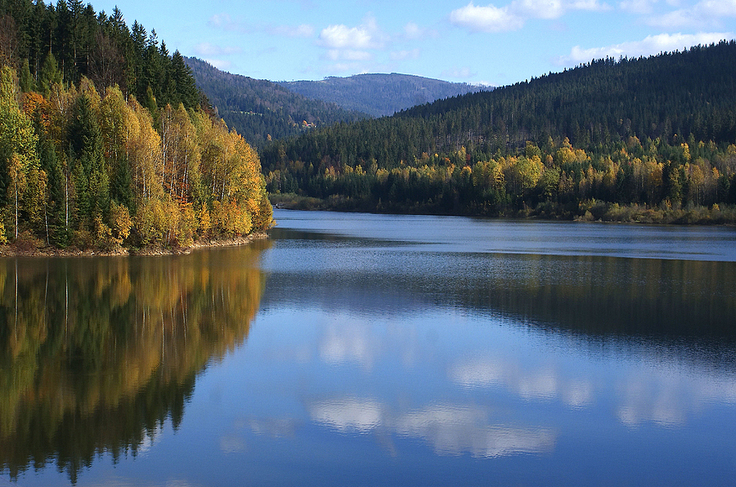 Piękne ujęcie z odbiciem w tafli jeziora:)
