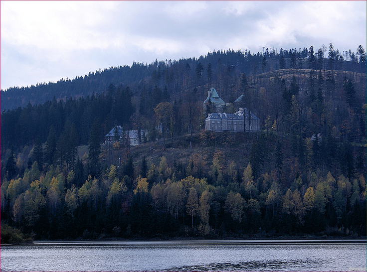 Widok na zabudowania Pałacyku Prezydenckiego z jez. Czarneńskiego