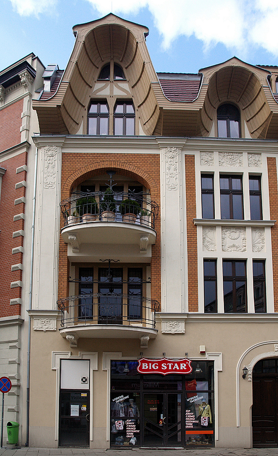 Tarnowskie Góry. Fragment zabytkowej kamienicy przy rynku.