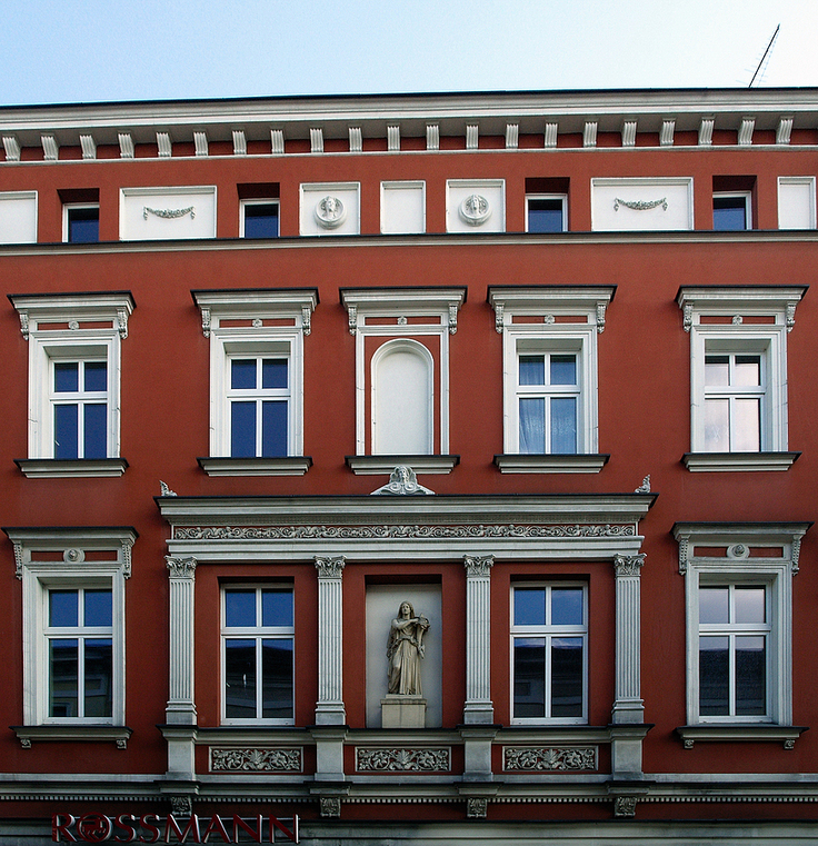 Tarnowskie Góry. XIX w. kamienica z figurą Demeter,bogini urodzaju.