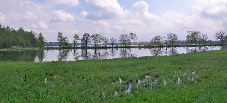 Panorama stawów w okolicy Zabrzega.