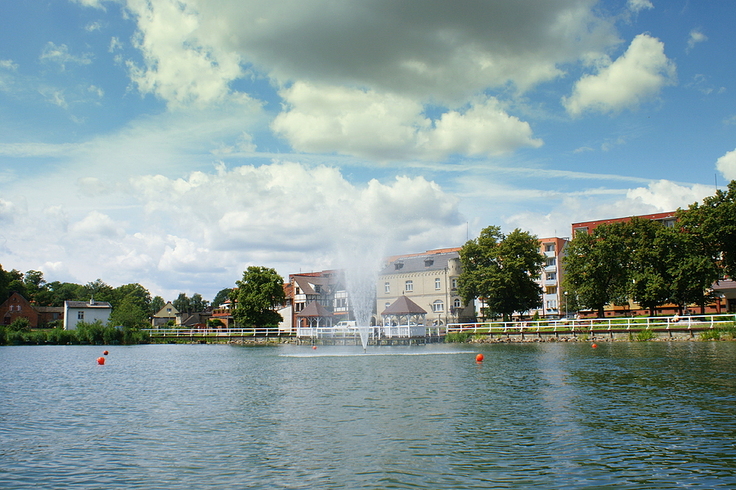 Jezioro Barlineckie fontanna na wodzie