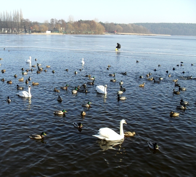 Naprawdę ryzykowna pasja! Widok wodnych ptaków, przypomina mi Wisłę w Krakowie jesienią i wiosną.