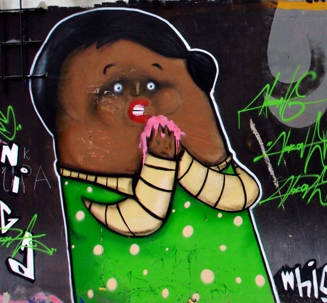 Widać, że ten sam autor murala i ten sam graficiarz co przy kwiaciarni - kiepska współpraca lub konkurencja ;)