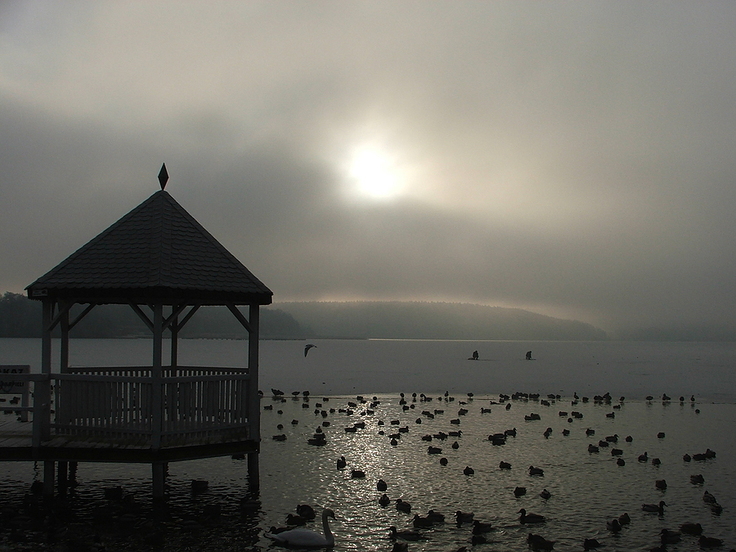 mgła zima i piekny szary krajobraz - Jezioro Barlineckie