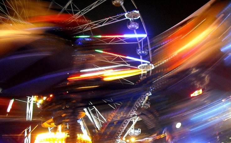 Warszawa. Karuzele przed PKiN.