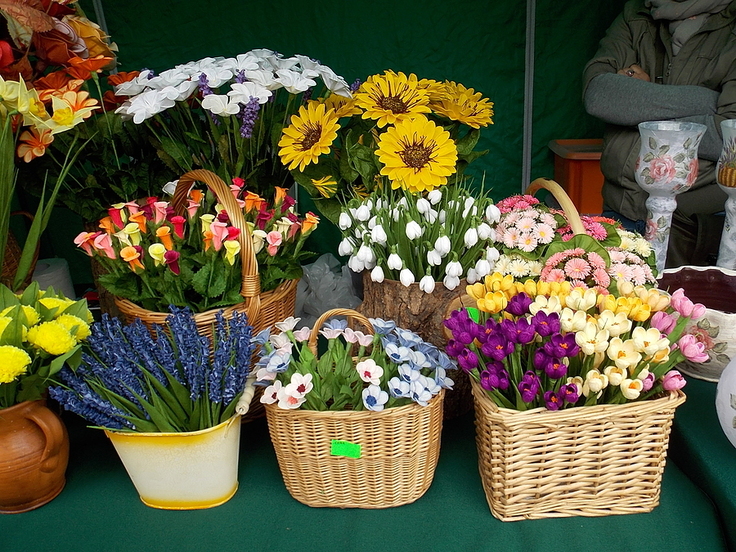 Warszawa. Dzień Ziemi 2015. Kwiaty z krepiny.