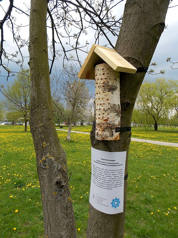 Warszawa. Hotel dla owadów w Parku Zachodnim.
