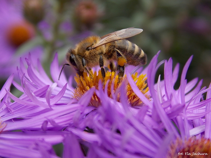 Ładnie w zbliżeniu prezentują się pszczółki. Udany kadr.