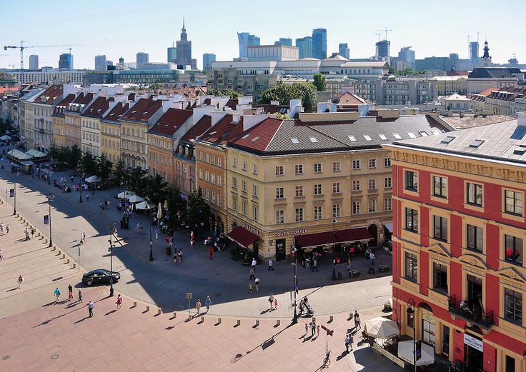 Warszawa. Widok z wieży kościoła św. Anny na Krakowskie Przedmieście.