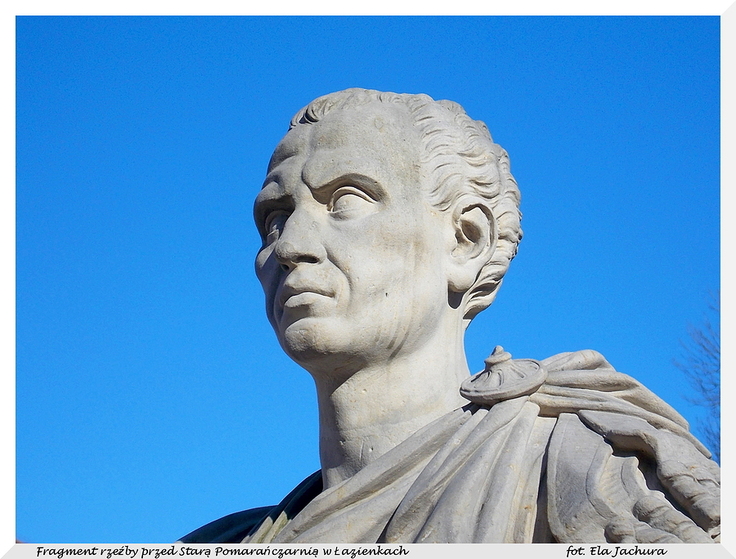 Warszawa. Fragment rzeźby przed Starą Pomarańczarnią w Łazienkach.