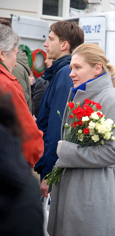 Warszawa, Krakowskie Przedmieście. Tłumy warszawiaków oddają hołd prezydentowi i ofiarom katastrofy prezydenckiego Tu-154