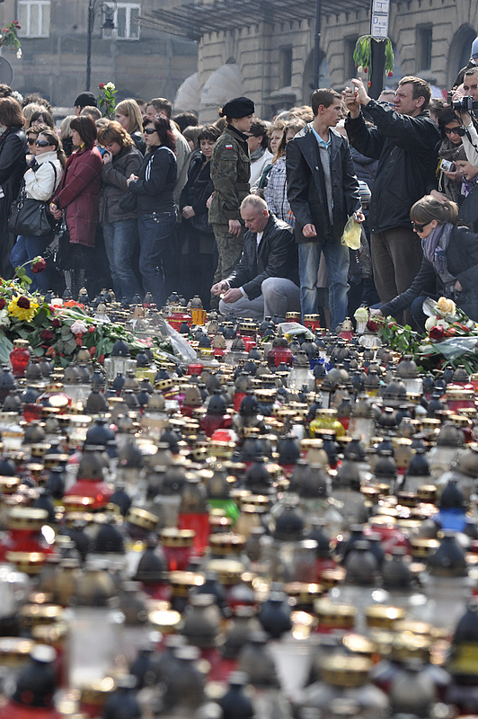 Żałoba narodowa. Warszawa, przed Pałacem Prezydenckim