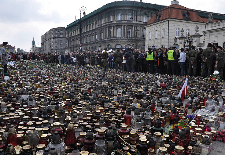 Żałoba narodowa. Warszawa, przed Pałacem Prezydenckim