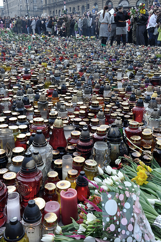 Żałoba narodowa. Warszawa, przed Pałacem Prezydenckim