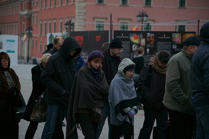 Przedmieście, poranek 14 kwietnia w kolejce do trumien Pary Prezydenckiej.