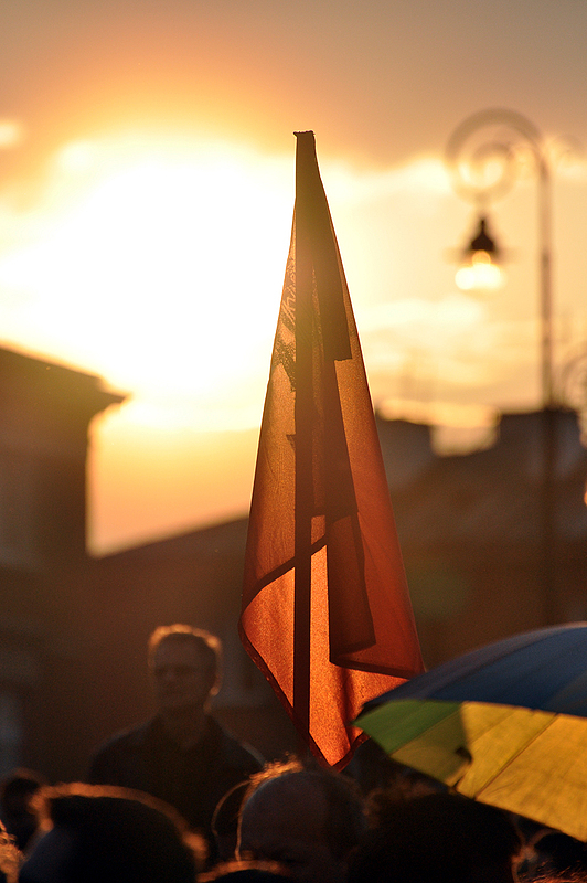 Zachód słońca na Placu Zamkowym. Kolejka do Pałacu Prezydenckiego