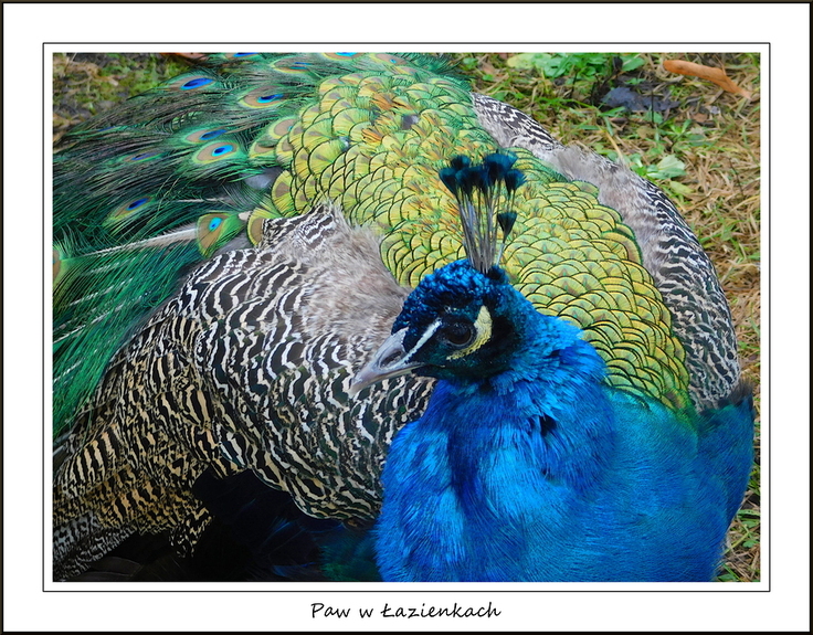 Warszawa. Paw w Łazienkach. Trochę koloru w grudniu