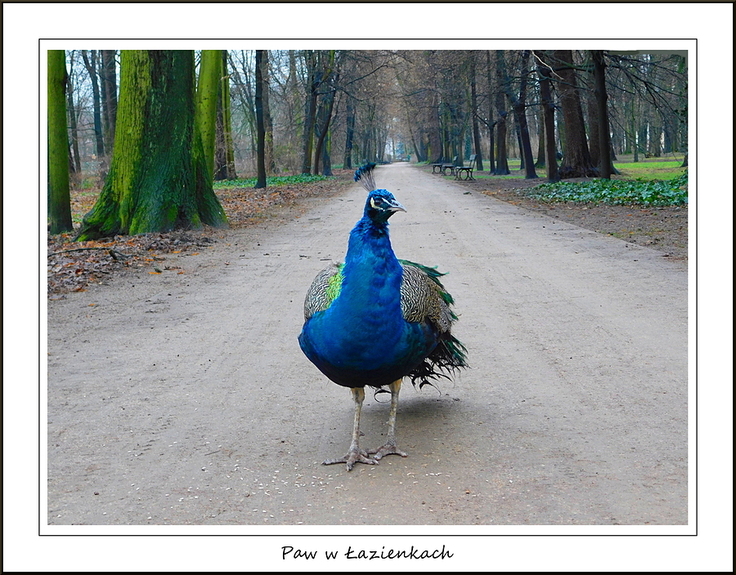 Warszawa. Paw w Łazienkach. Trochę koloru w grudniu