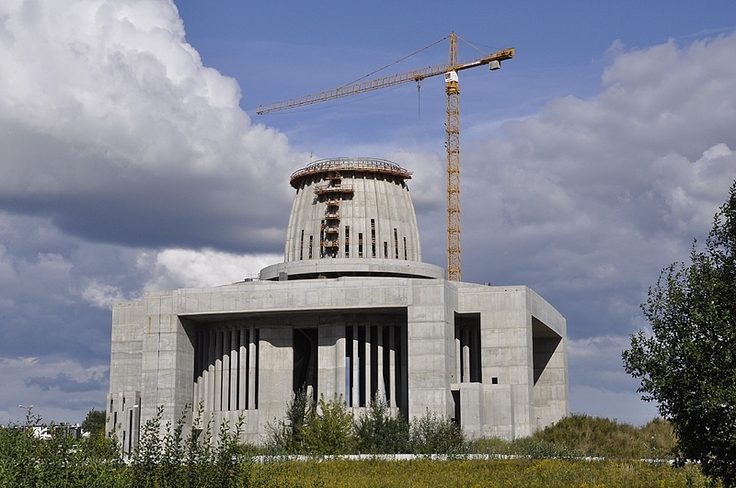 Przesadzona to i tak delikatne okreslenie ;-) Wiedzialem, ze ta budowla ma byc duza, widzialem ja czasem z samochodu z daleka, ale jak wyjechalem rowerem na aleje Rzeczpospolitej i spojrzałem przed siebie, to mnie aż zatkało. Ogrom poteguje jeszcze otoczenie niskich bloczków mieszkalnych, które gęsto wyrastają w bezpośrednim sąsiedztwie. Moze nasza świątynia ma być większa od tej: http://fotoforum.gazeta.pl/zdjecie/1529347,5,1,25439,P1070685.html