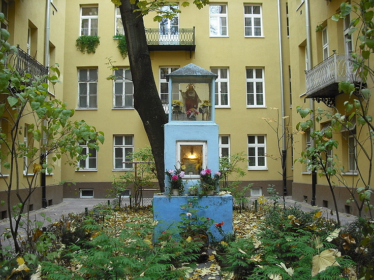 Warszawa. Kapliczka na podwórku przy ul. Emilii Plater 12.