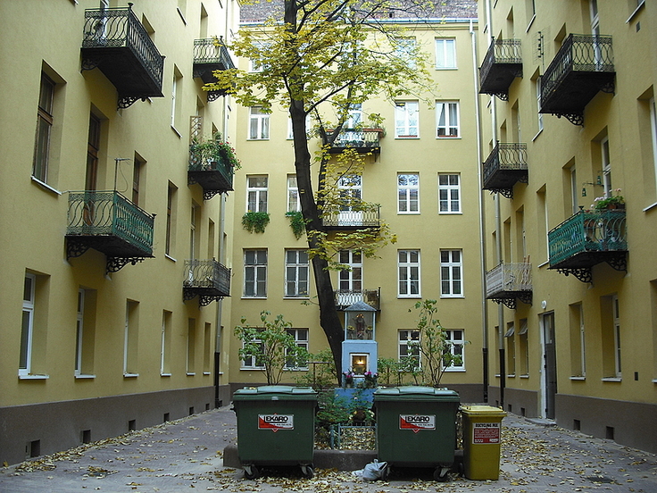 Warszawa. Kapliczka na podwórku przy ul. Emilii Plater 12.