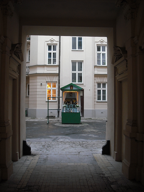 Warszawa. Kapliczka na podwórku przy ul. Hożej 27.