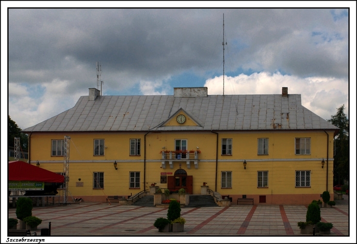 Budowę ratusza rozpoczęto w 1840 roku. Budynek został zbudowany w kształcie czworoboku. W okresie niewoli narodowej w ratuszu znajdował się Urząd Burmistrza oraz przejściowo siedziba Rady Miejskiej. Władzę w tym miejscu do roku 1916 pełnił burmistrz, a także dwóch ławników. Od 1916 roku natomiast po upuszczeniu Szczebrzeszyna przez Rosjan i zdobyciu go przez Austriaków, przez około rok czasu władzę w ratuszu sprawował komisarz. Obecnie budynek stanowi siedzibę Urzędu Miejskiego.