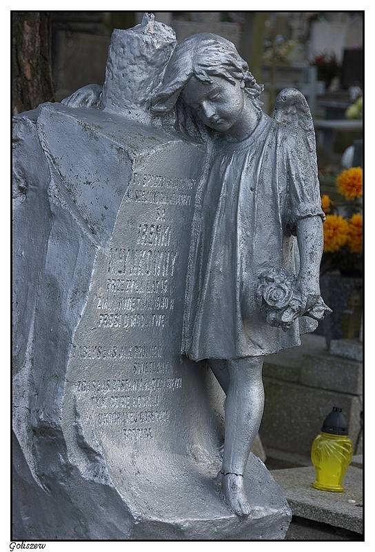 Goliszew - cmentarz parafialny - aniołek na nagrobku