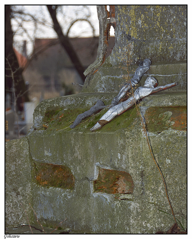 Goliszew - cmentarz parafialny - zniszczony Chrystus z nagrobnego krzyża