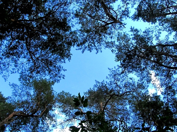 Gdy idę do lasu na fotograficzne łowy, wiem wtedy, że muszę mieć oczy dookoła głowy i to jeszcze szeroko otwarte, żeby obserwować las nie tylko dookoła siebie, ale i patrzeć pod nogi i na poszycie leśne, a także zadzierać głowę, bo i tam bywają sytuacje, które warto utrwalić na swojej cyfrówce. Właśnie zobaczyłem w górze okrąg nieba utworzony przez korony drzew. Ten obraz nasunął mi skojarzenie ze starą dziecięcą piosenką-zabawą \"Kółko graniaste\" i taki tytuł nadałem tej pracy fotograficznej.