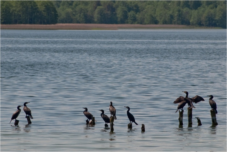 Kormorany to chyba jedyne ptaki których nie darzę sympatią.Jeszcze 20 lat temu na Wigrach widywało się pojedyncze sztuki.Obecnie latem przylatuje tu ich do 5 tysięcy.Zniszczyły wiele drzew w swoich noclegowniach.Jeden ptak zjada do 0,4kg ryb dziennie, 5 000 ptaków -2 tony!
