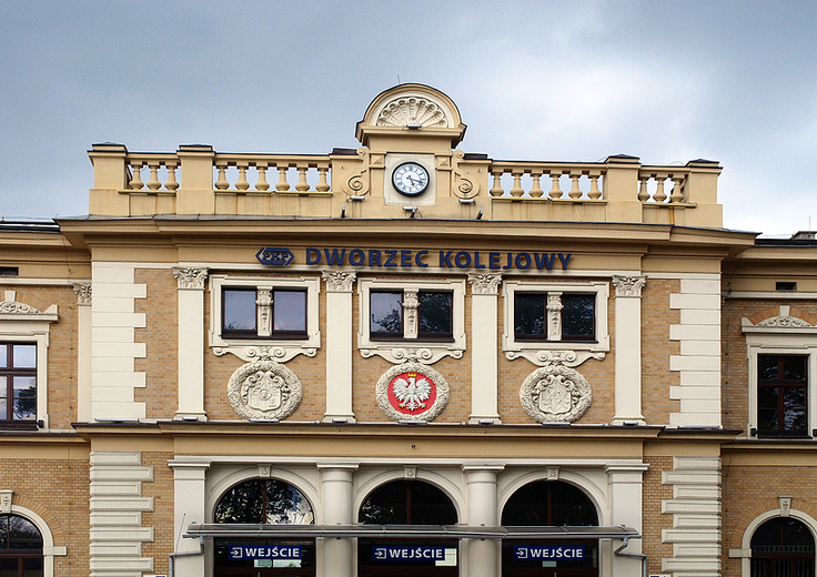 Fragment neorenesansowego, zbudowanego w 1888r. Dworca PKP