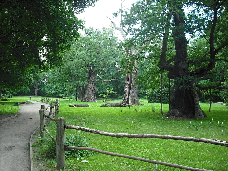 Rogalin. Dęby rogalińskie. Dęby w parku pałacowym. LECH, CZECH i RUS.