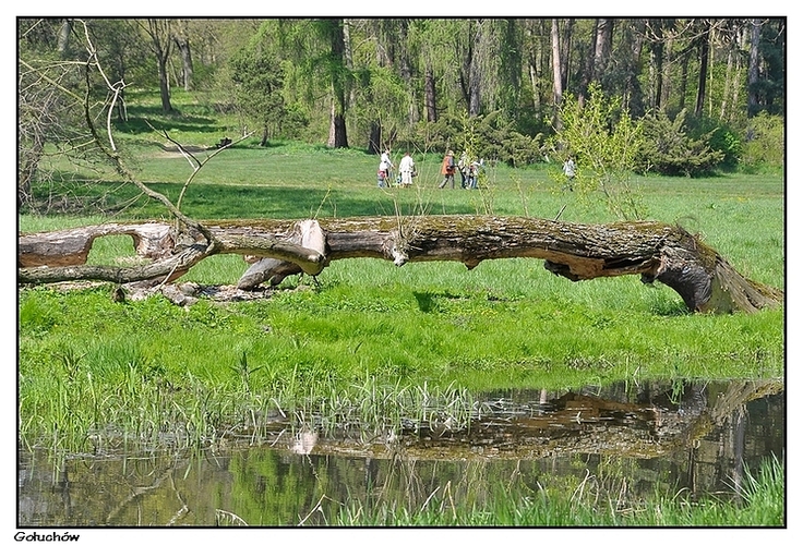 Gołuchów - drzewo powalone przez bobry