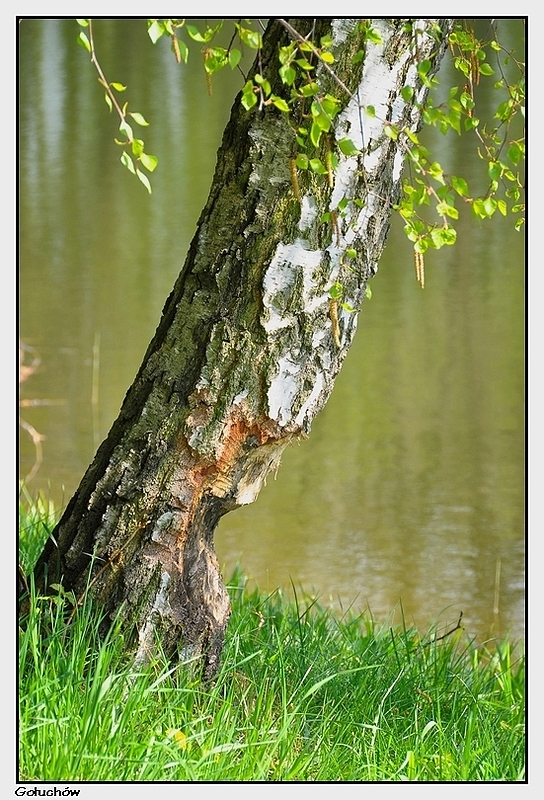Gołuchów - park, brzoza nadgryziona przez bobry