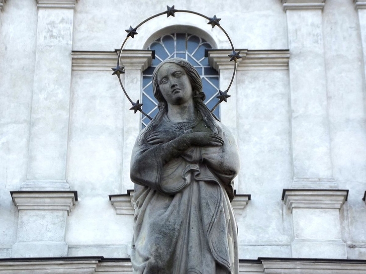 Figura Niepokalanej przed kościołem św. Franciszka Ksawerego
