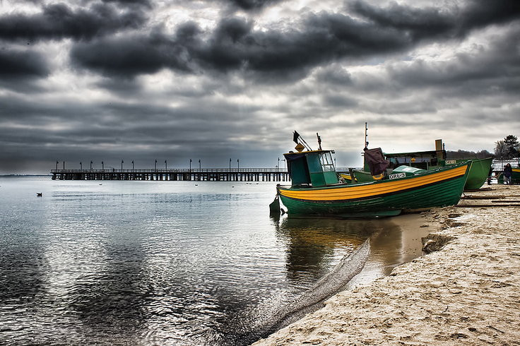 chmury i kuter w ciekawym kontraście , srebrne morze też mi się podoba